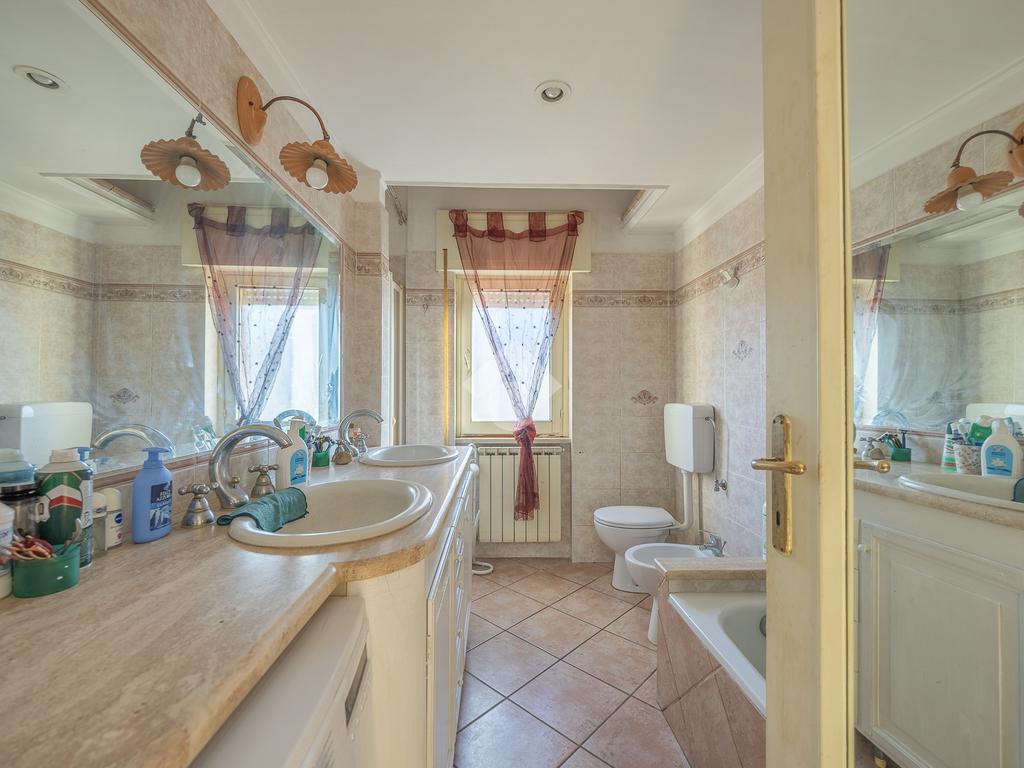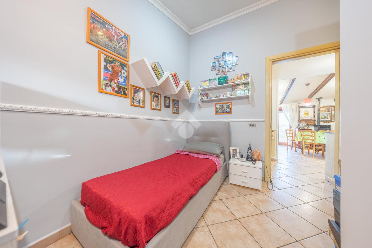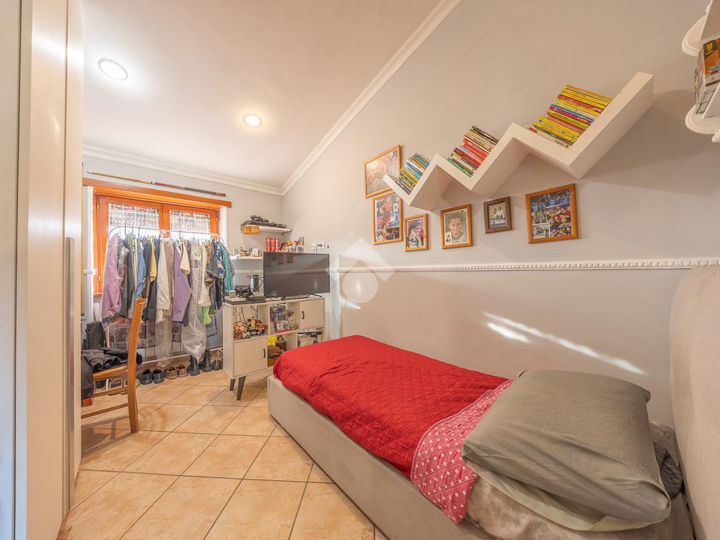 La zona notte comprende una spaziosa camera matrimoniale, anch’essa con accesso diretto al secondo balcone, per un’ulteriore area di relax, una cameretta versatile e un bagno finestrato con vasca.