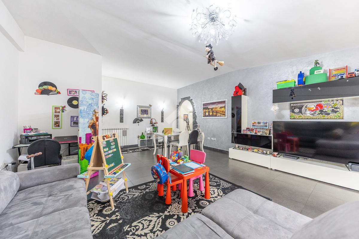Il protagonista della casa è un soggiorno doppio, ampio e luminoso, con accesso diretto al balcone esterno, perfetto per vivere momenti di relax e convivialità.