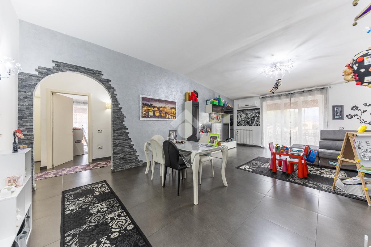A soli 450 metri da Via Casilina, in una palazzina in tinta, si trova questo appartamento al terzo piano che colpisce subito per la sensazione di spazio e luminosità che si respira appena si entra.