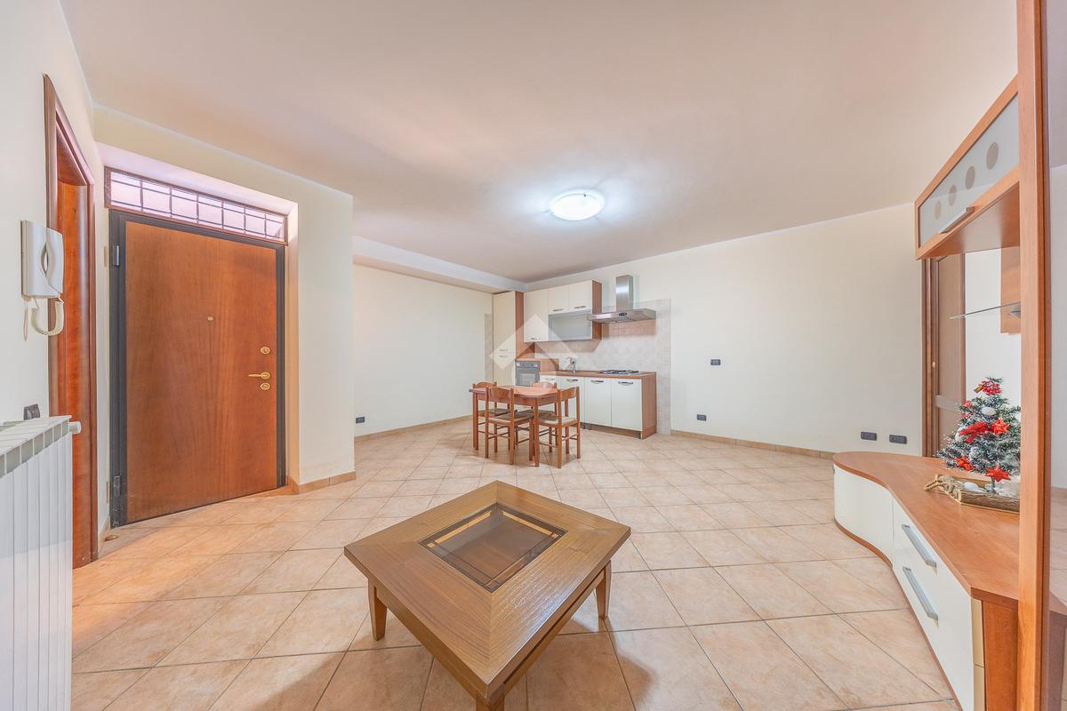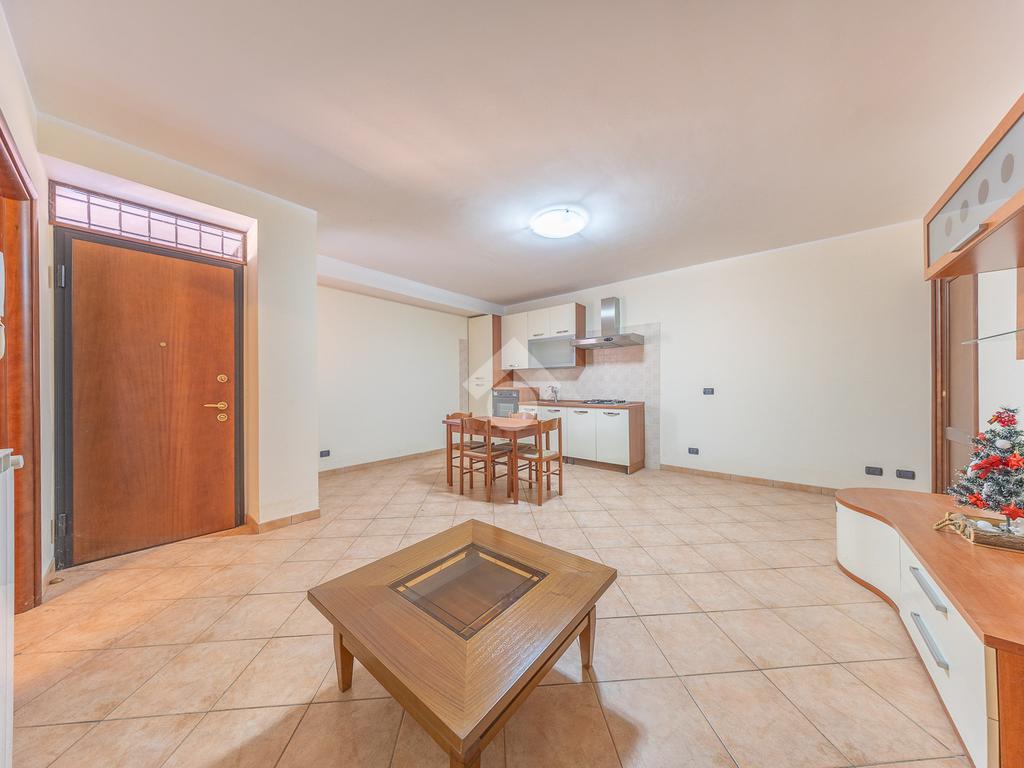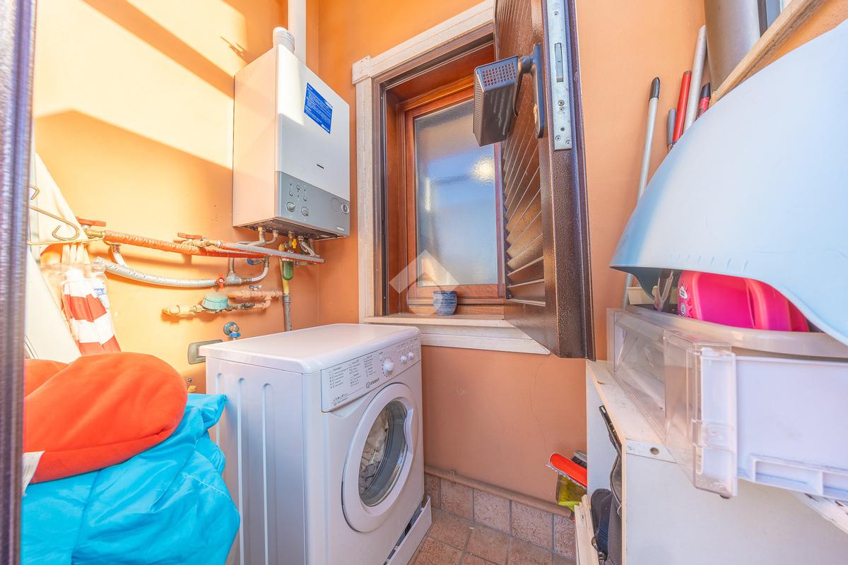 Al piano terra, entri in un accogliente soggiorno con angolo cottura, che affaccia sul terrazzo esclusivo dove trovi anche l’attacco per la lavatrice.